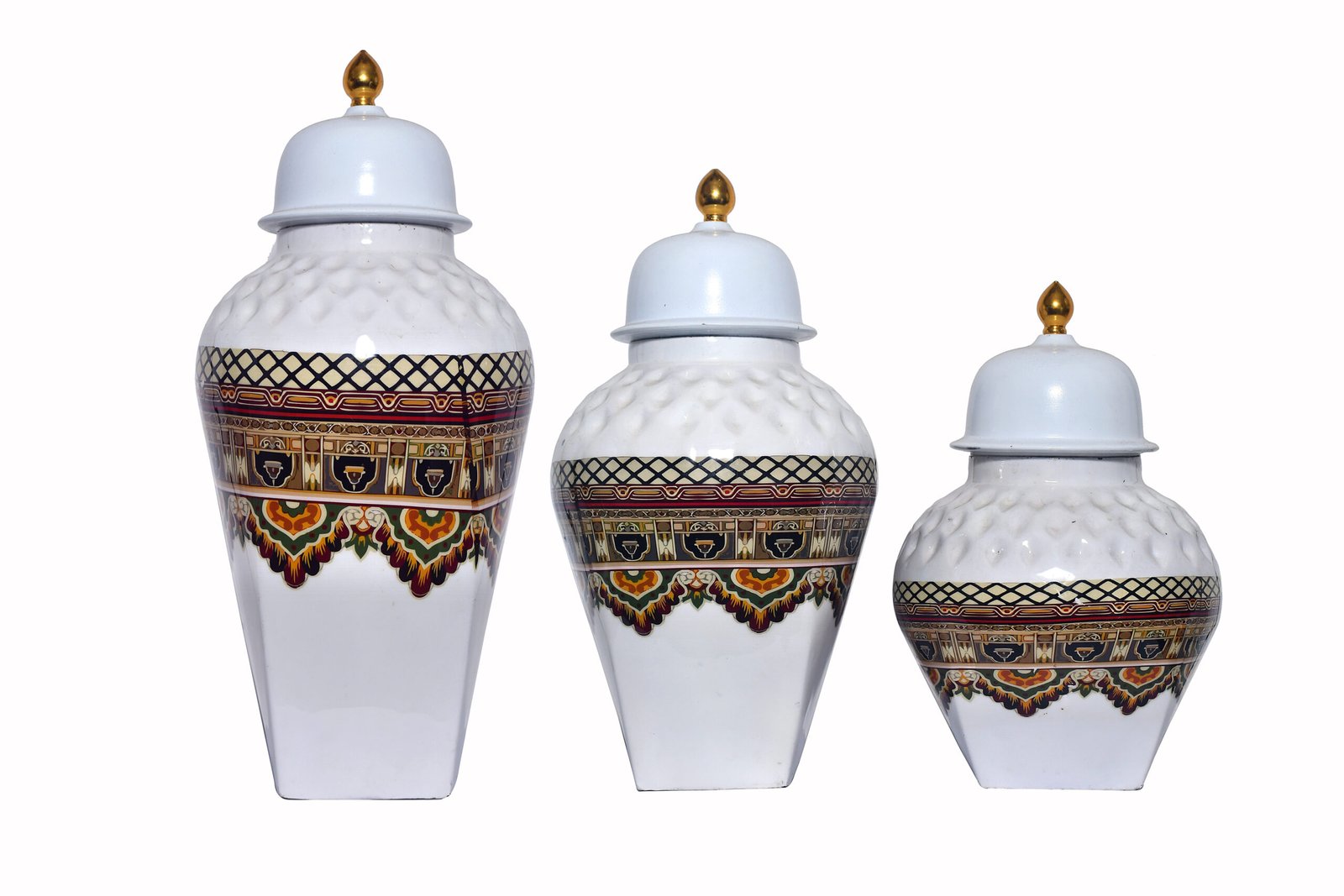 Ornate White & Multicolor Metal Iron Ginger Jar Set – Decorative Storage Jars (Set of 3)