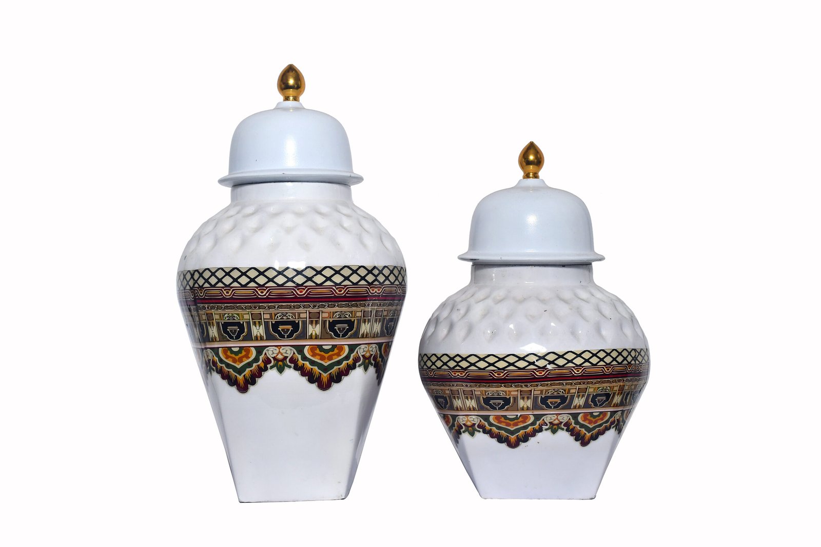 - Design: Traditional Ginger Jar Shape with Golden Finials